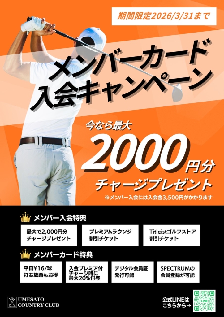 また、入金チャージ時には最大20%の会員プレミア付与のキャンペーンや、LINEデジタル会員証でスマートフォンひとつで管理ができ、スイング解析システムのスペクトラム(Spectrum)の会員登録も可能です。